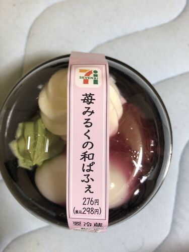 パフェは好きじゃないですが美味かったです。下は寒天が入ってますがその部分がそんなテンション上がらない。★★★★☆ 苺みるくの和ぱふぇを食べる、実家がセブンイレブンだから。